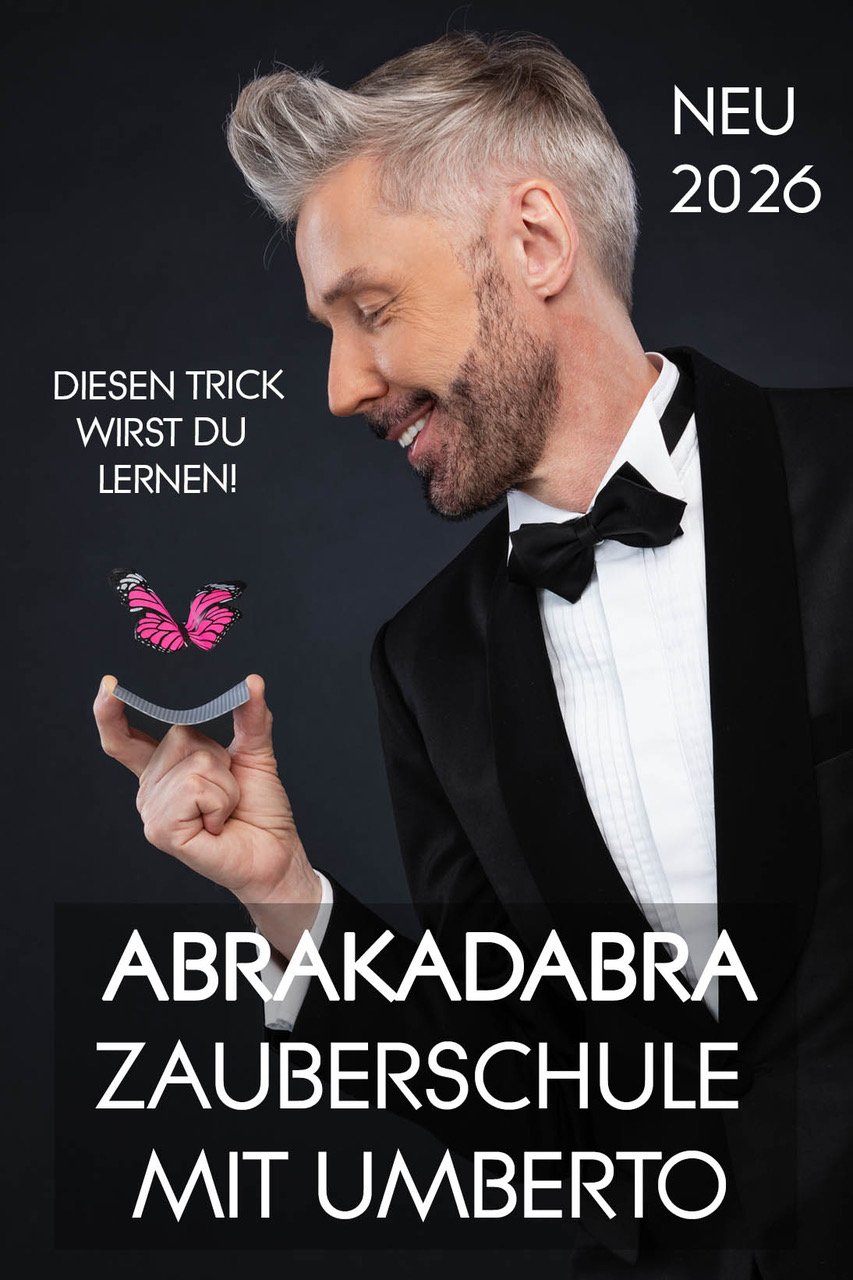 Kursdauer: 9.00 - 11.45 Uhr 15 Minuten vor Schluss präsentiert UMBERTO noch eine kleine Zaubershow für Kinder, Eltern und Begleitpersonen. Inklusive: 4 Neue Top-Zauberrequisiten zum nach Hause nehmen! Mitnehmen: Znüni, Getränk und Freude am Zaubern. ACHTUNG: 2026 Neue Tricks und Neue Zaubershow! Für diesen Kurs werden noch Begleitpersonen gesucht! Du kannst dich über den Helfen-Button/als Hilfsperson registrieren als Begleitperson anmelden. Vielen Dank für deine Hilfe! Ohne Begleitperson kann dieser Kurs leider nicht durchgeführt werden.